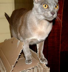 Got Luke up here . Kiri sounds a lot like one of our old cats, Miss Indigo. She loved eating cardboard and playing with those styrofoam packing peanuts.